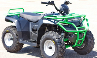 ATV150 имеет современный дизайн и компоновку. Элементы конструкции спроектированы таким образом, что бы обеспечить комфортное передвижение по любому покрытию. Для удобства установлены розетка питания 12 вольт, панель приборов со всей необходимой информацией, электрозапуск двигателя и ручной запуск. Широкие колесные арки уменьшают попадание грязи на водителя, продуманное сиденье позволят занять любому человеку удобную посадку на квадроцикле. Проверенный годами эксплуатации двигатель 150 куб.см, через клиноременный вариатор разгоняет квадроцикл до 65 км/ч. Бак 10 литров позволяет преодолеть большое расстояние без дозаправки.