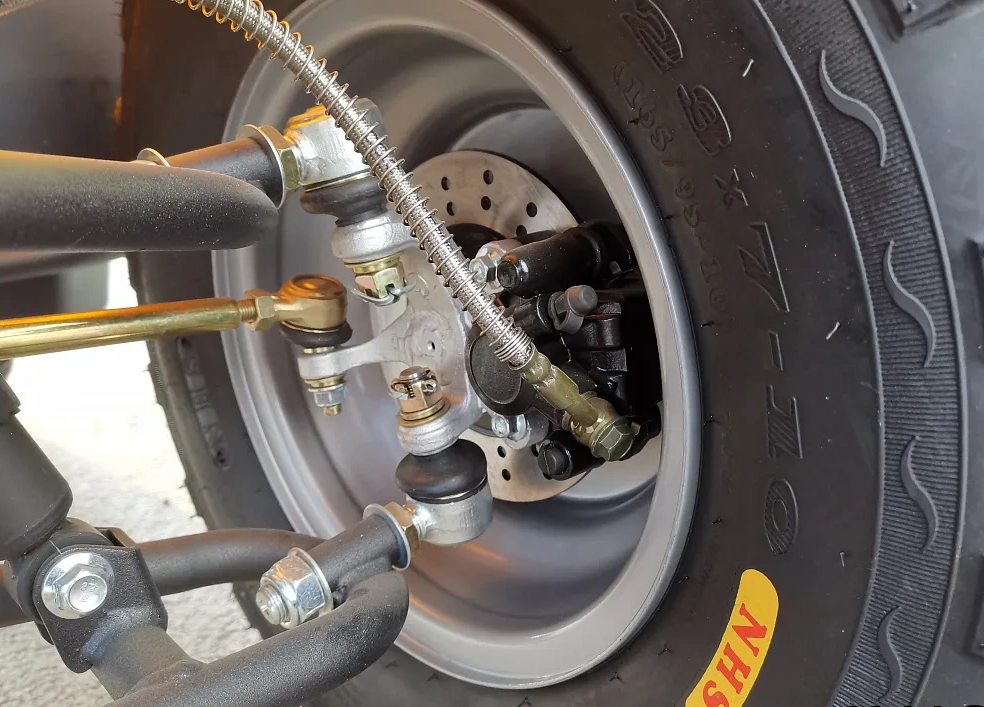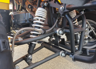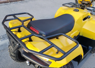 Независимая передняя подвеска позволяет легко маневрировать и держать уверенно курс. В наличие задний ход. На квадроцикле установлены большие внедорожные шины размером 23 дюйма передние и 22 дюйма задние. На задней оси установлены дополнительные защитные кожухи.