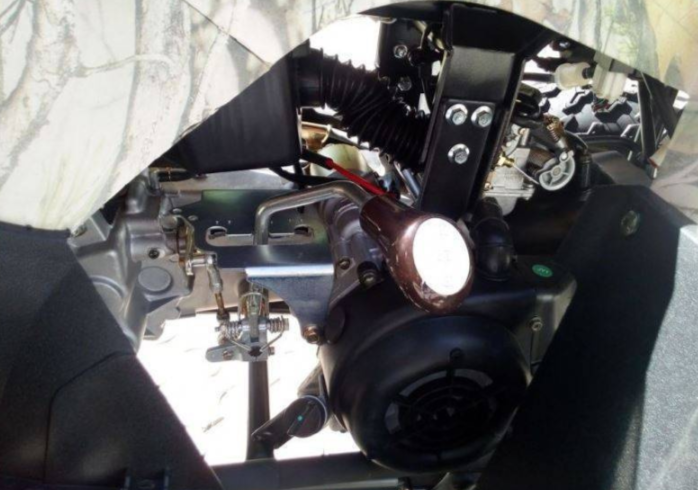 Квадроцикл оснащен двигателем 161 QMK на 200 см3 c воздушно-маслянным охлаждением и автоматической коробкой передач с реверсом, дисковыми тормозами, электростартером.