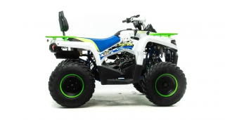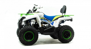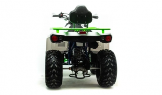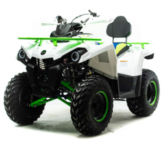 Данная модель оснащена двигателем 1P63 QMK автоматической коробкой передач, увеличенным масляным радиатором, ручным и электростартером. Предназначен для езды по бездорожью, имеет хорошую проходимость, прекрасно ведёт себя на песке, грунте и в грязи. Это одна из лучших моделей ATV по соотношению цены и качества. Подходит для новичков и любителей. Новые сбалансированные амортизаторы позволяют легко преодолевать ямы, ухабы и другие неровности. Задняя подвеска маятниковая, с новым, усиленным моно-амортизатором. Квадроцикл доступен в белом цвете с модернизированной светодиодной оптикой, ходовыми огнями и поворотниками отлично выглядит в своем новом агрессивном стиле. Дополнительная спинка пассажира, а так же USB разъем. ATV SHARK 200 весит 160 кг, выдерживает нагрузку до 150 кг. Рама стальная, трубчатая, покрашена в цвет металлик. Прочный облицовочный пластик не ломается при сгибании, герметизированная проводка защищает от грязи. Размер задних колес — 22х10 R10, передних — 23х7 R10, а так же усиленной задней осью. Система зажигания электронная (CDI). У квадроцикла отличный запас хода: объём топливного бака — 10 л, расход топлива — 4/5 л на 100 км. Передние фары обновленного дизайна легко включается поворотом замка зажигания и позволяют ездить в сумерках и темноте. Данная модель оснащена 1-поршневыми тормозными суппортами, спереди и сзади. Тормозной шланг армированный. Имеется стояночный тормоз как передних так и задних колес. На квадроцикле установлена лебедка.