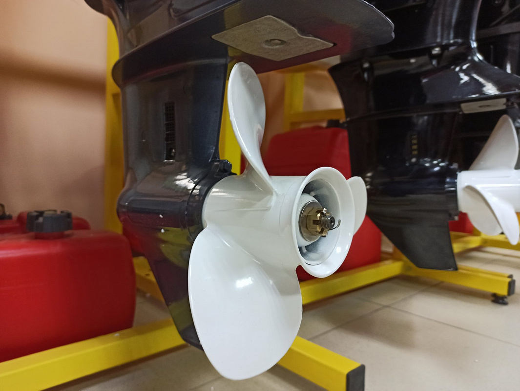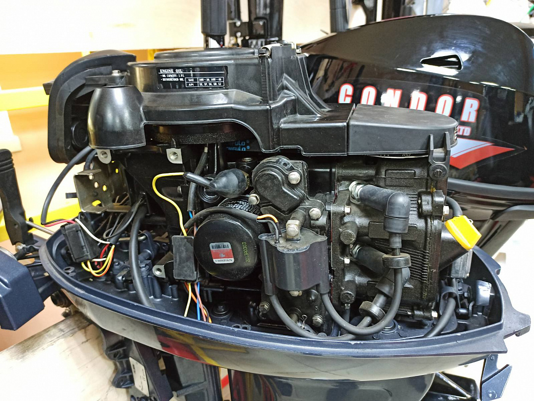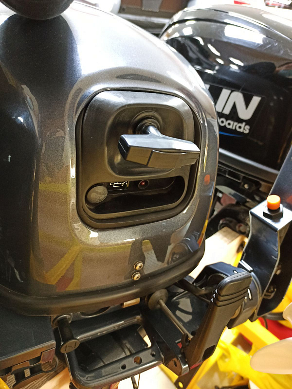 Лодочный мотор с румпельным управлением. Ручка газа имеет три положения F-N-R(передний-нейтраль-задний). Запуск двигателя производится вручную шнуром.