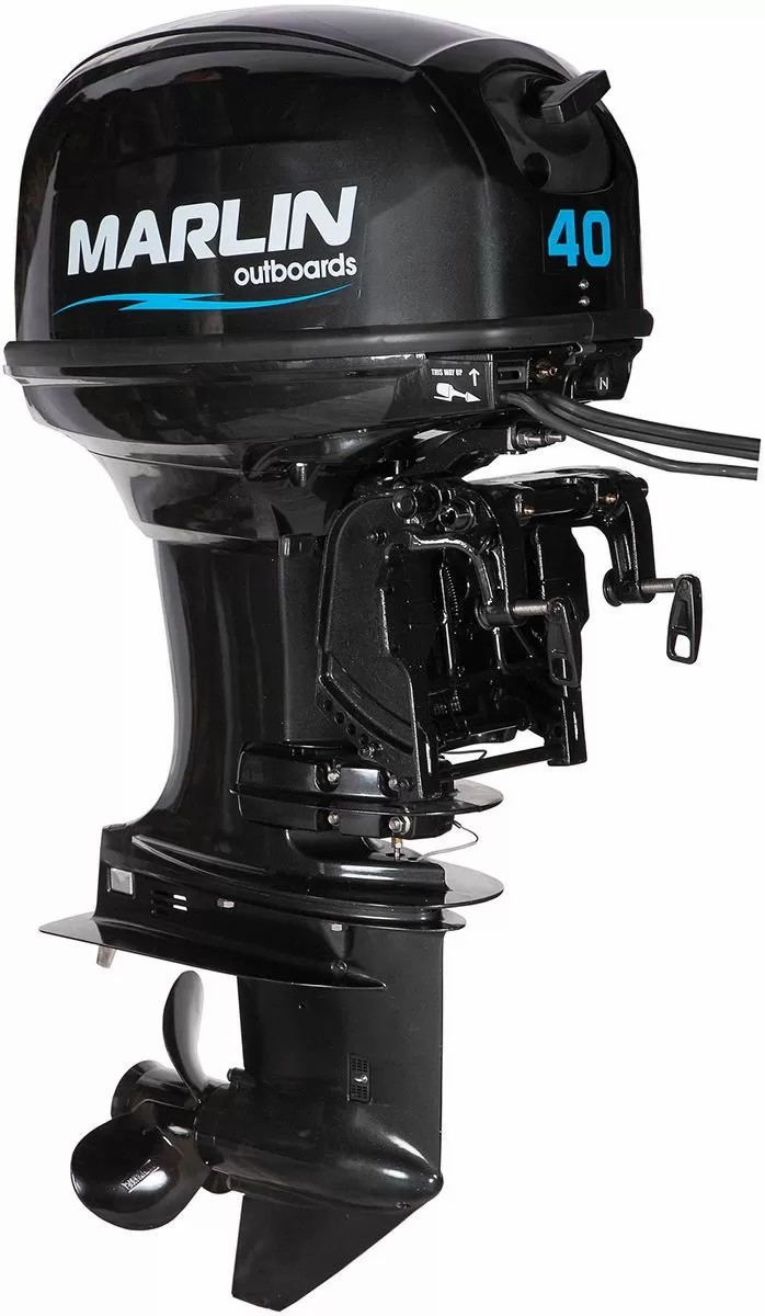 MP 40 AERTL: Лодочный мотор Marlin Outboards, двухтактный, 40 лошадиных сил, электрический запуск двигателя, дистанционное управление, гидропривод, длинная нога (дейдвуд).