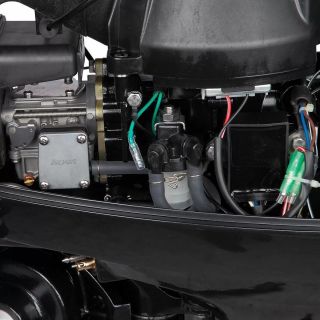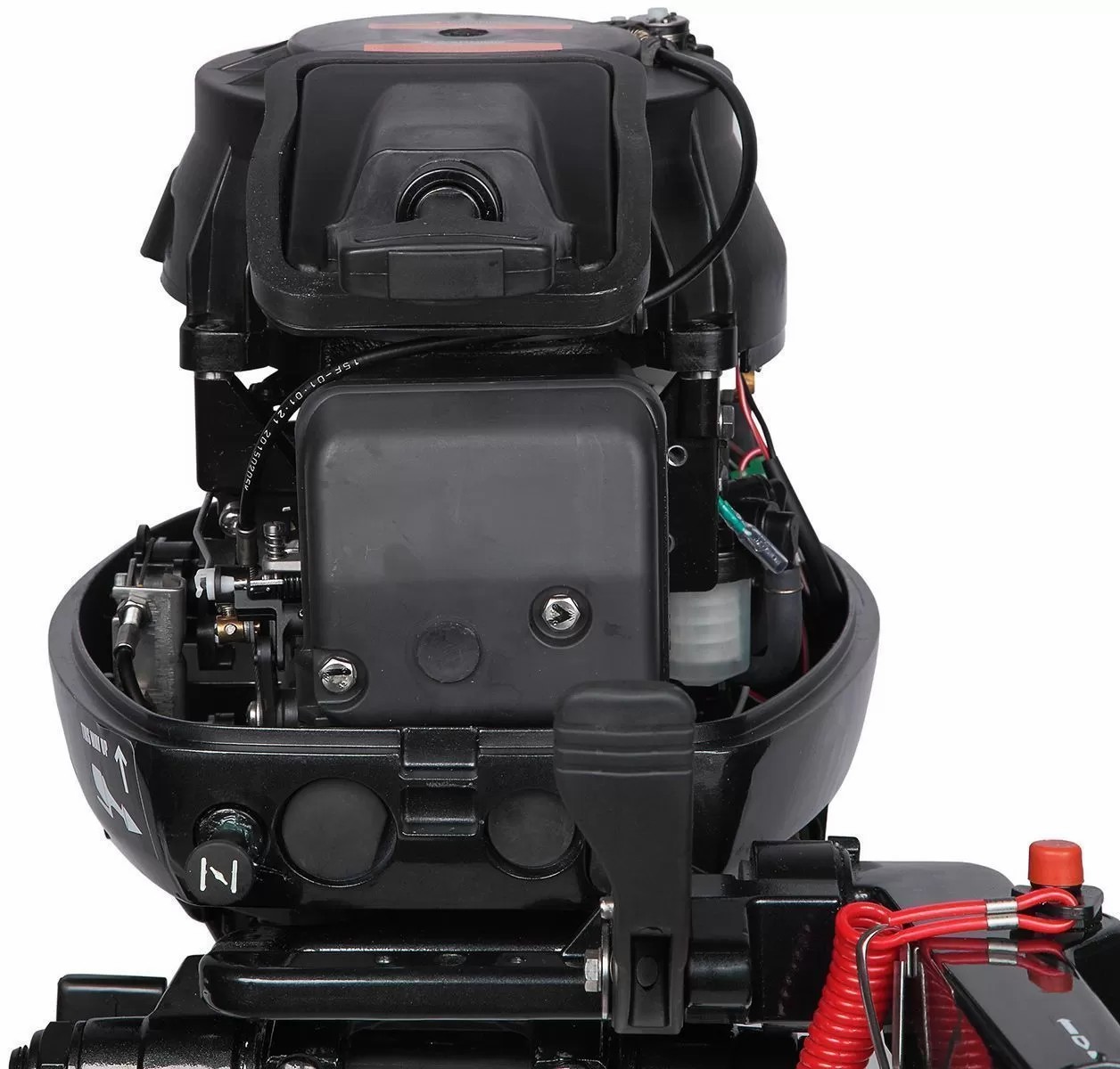 MF 15 AWHS: Лодочный мотор Marlin Outboards, четырехтактный, 15 лошадиных сил, комбинированный (ручной запуск + электрический запуск) запуск двигателя, румпельное управление, короткая нога (дейдвуд).