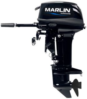 MF 15 AWHS: Лодочный мотор Marlin Outboards, четырехтактный, 15 лошадиных сил, комбинированный (ручной запуск + электрический запуск) запуск двигателя, румпельное управление, короткая нога (дейдвуд).
