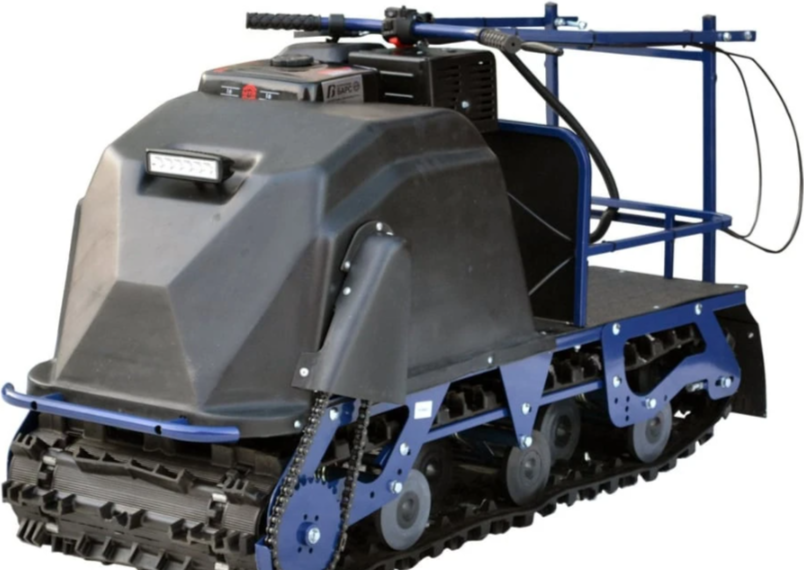 Мотобуксировщик относится к средним утилитарным буксировщикам. Гусеница Барс. Идеальна для глубокого рыхлого снега. Наилучшая проходимость достигается в сочетании гусеницы "Барс" и склизовой подвески DS (Deep Snow). Гусеницы "Барс" в сочетании с катковой подвеской позволяет использовать буксировщик в условиях отсутствия неглубокого снежного покрова и на льду. Гусеница "Барс" имеет самый высокий грунтозацеп среди буксировщиков на рынке, обеспечивает максимальную проходимость. Гусеница "Барс" имеет грунтозапы препятствующие боковому скольжению, что незаменимо при движении вдоль склонов.Буксировщик оборудован складным рулём. Крепление руля расположено максимально низко, у основания рамы. Как показали многочисленные испытания, такая конструкция является максимально управляемой. А также она наиболее удобна пользователю во время движения и позволяет без труда совершать манёвры даже слабо физически подготовленным людям. Перенос крепления руля на верх багажника усиливает физические усилия на маневрирование и приводит к заваливанию буксировщика при поворотах в снегу.