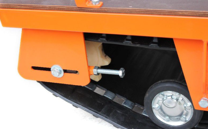 Добавлена дополнительная ось на раме, которая предотвращает переворачивание передних катков при ослабленном натяжении гусеницы.