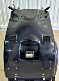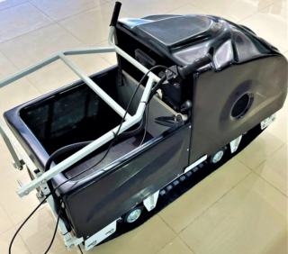 Мотособака весит 110 кг, а размер ее составляет 137 см в длину, 60 см в ширину и 81 см в высоту. Модель оснащена гусеницей шириной 500 мм. Гусеница в сочетании с катковой подвеской способна проходить спокойно по льду и даже по территории без снега.