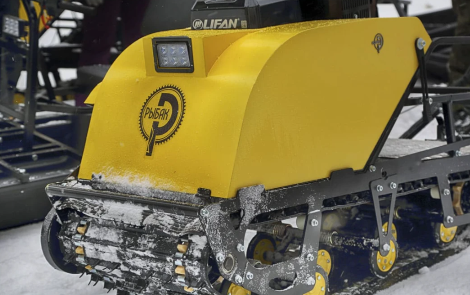 В конструкции мотовездехода используется цельная резиновая гусеница Composit шириной 500 мм. Гусеница в сочетании с катковой подвеской способна проходить спокойно по льду и даже по территории без снега.