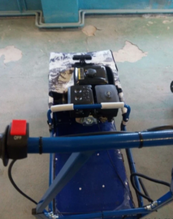 Буксировщик оснащен 4-х тактным двигателем мощностью 15 л. с. и объемом 420 кубов, достигающий скорость до 50 км/ч. Это позволяет быстро перевозить груз до 50 кг на специальной багажной площадке мотобуксировщика. Также есть возможность установить сани к мотобуксу, что позволит перевозить дополнительно до 80 кг.